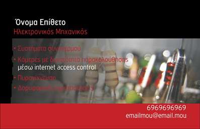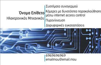 Οι επαγγελματικές κάρτες για Ηλεκτρονικούς είναι ο βασικός τρόπος επικοινωνίας και προώθησης της επιχείρησής σας. Στην ηλεκτρονική εποχή, η επικοινωνία μέσω καρτών είναι πιο σημαντική από ποτέ. Μια επαγγελματική κάρτα που κατασκευάζεται με προσοχή και προσήλωση στη λεπτομέρεια μπορεί να δώσει μια πρώτη καλή εντύπωση στους πελάτες σας και να βοηθήσει στη διαφήμιση της επιχείρησής σας. Καθώς οι Ηλεκτρονικοί είναι ειδικοί στον κλάδο τους, η επαγγελματική κάρτα τους πρέπει να αντικατοπτρίζει την επαγγελματική τους αξία και εμπειρία. Μια καλή επιλογή για το σχεδιασμό της κάρτας σας είναι να χρησιμοποιήσετε στοιχεία που αναφέρονται στην ηλεκτρονική, όπως κυκλώματα, στοιχεία εξόδου, και πινακίδες καταγραφής. Επίσης, μπορείτε να προσθέσετε τα ειδικά σας προσόντα και τις πιστοποιήσεις στην κάρτα σας, για να κάνετε μια πιο αποτελεσματική παρουσίαση των επαγγελματικών σας ικανοτήτ