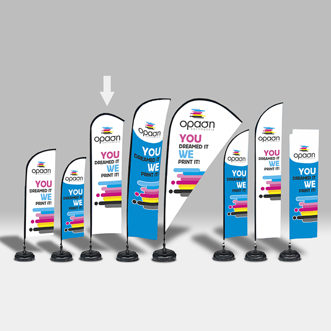 Για τα Flying Banner μπορείτε να χρησιμοποιήσετε τις παρακάτω επιλογές στήριξης ανάλογα το είδος του Flying Banner και το σημείο που θα θέλατε να το τοποθετήσετε.