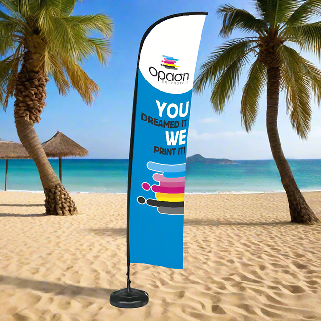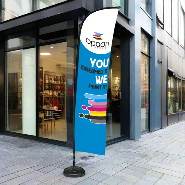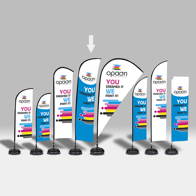 Ο συνδυασμός του ανθεκτικού μεταλλικού σκελετού με την ευέλικτη καμπυλωτή γραμμή δίνει σταθερότητα και αισθητική, ενώ το σημαιόπανο αποδίδει με ζωντάνια κάθε χρώμα και γραφικό.