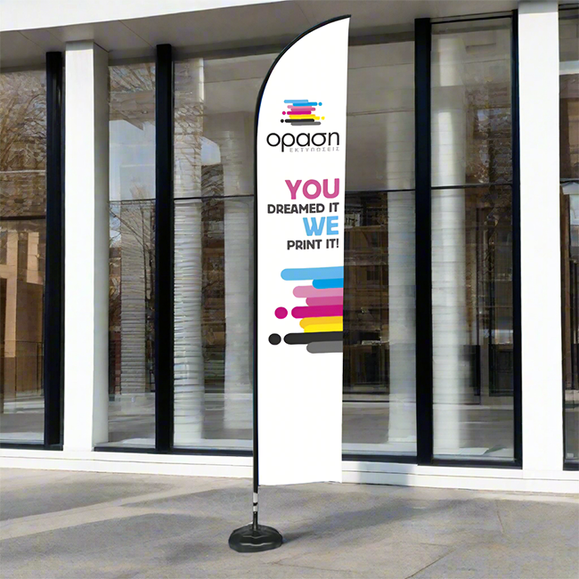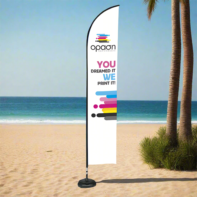 Η εκτύπωση πραγματοποιείται σε σημαιόπανο υψηλής αντοχής, με διαστάσεις 70x400 cm, εξασφαλίζοντας καθαρά γραφικά και έντονα χρώματα που δεν περνούν απαρατήρητα. Ιδανικό για εκθέσεις, event, καταστήματα και beach bars, προσφέρει έναν συνδυασμό επαγγελματισμού και εντυπωσιακής παρουσίας.