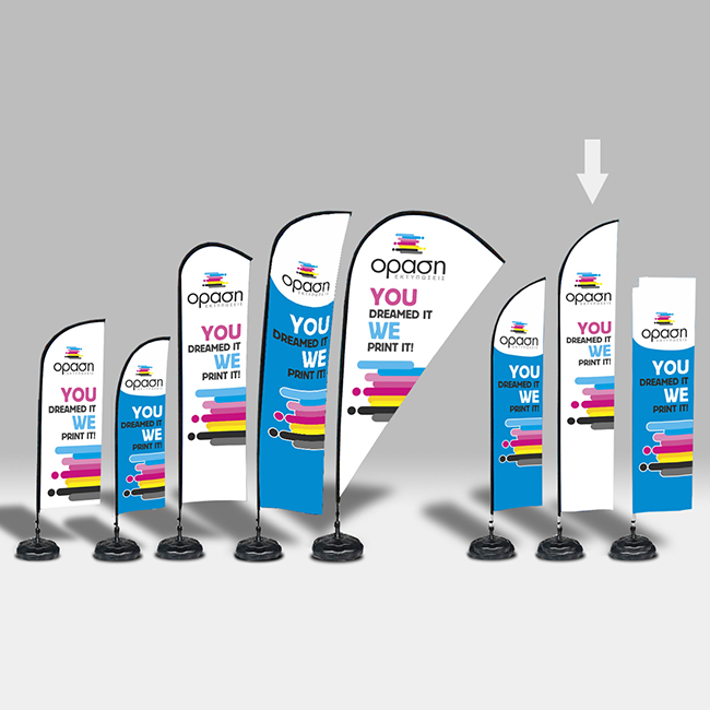Για τα Flying Banner μπορείτε να χρησιμοποιήσετε τις παρακάτω επιλογές στήριξης ανάλογα το είδος του Flying Banner και το σημείο που θα θέλατε να το τοποθετήσετε.