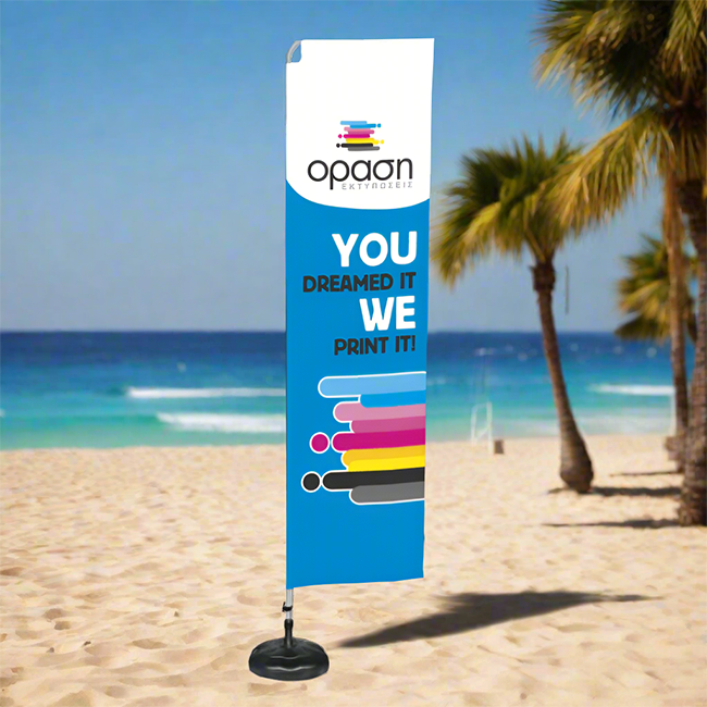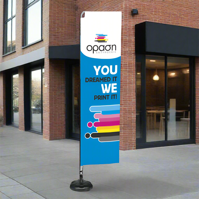 Η εκτύπωση γίνεται σε σημαιόπανο διαστάσεων 80x300 cm, με φωτεινά χρώματα και ευδιάκριτα γραφικά, που εξασφαλίζουν άμεση οπτική επαφή με το μήνυμά σας. Ιδανικό για εταιρικές εισόδους, εκθέσεις ή προωθητικές καμπάνιες με premium χαρακτήρα.