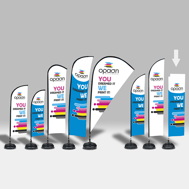 Για τα Flying Banner μπορείτε να χρησιμοποιήσετε τις παρακάτω επιλογές στήριξης ανάλογα το είδος του Flying Banner και το σημείο που θα θέλατε να το τοποθετήσετε.