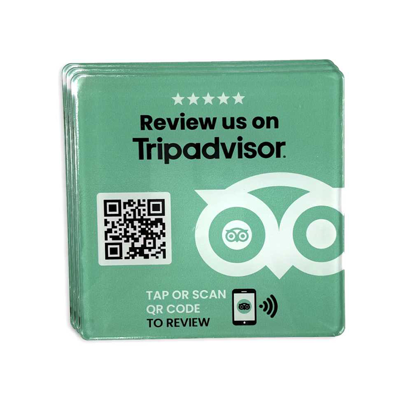 Το νέο μας σουβέρ είναι η ιδανική λύση για επιχειρήσεις που θέλουν να συλλέξουν θετικές κριτικές Tripadvisor. Το σουβέρ είναι κατασκευασμένο από ανθεκτικό ακρυλικό πλέξι γκλας και διαθέτει έγχρωμη εκτύπωση με το λογότυπο της επιχείρησής σας. Επιπλέον, διαθέτει τεχνολογία QR Code και NFC, ώστε οι πελάτες σας να μπορούν να αφήσουν εύκολα και γρήγορα μια κριτική για την επιχείρησή σας στο Tripadvisor.