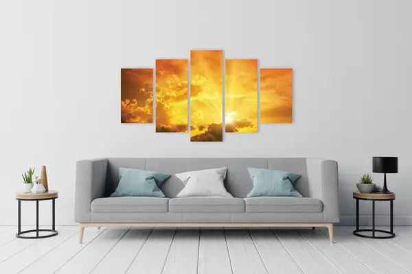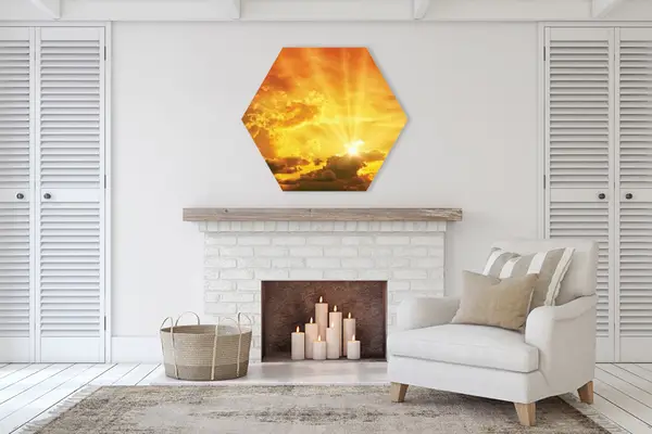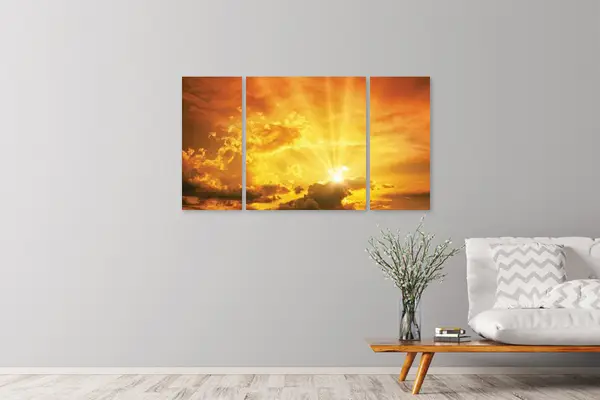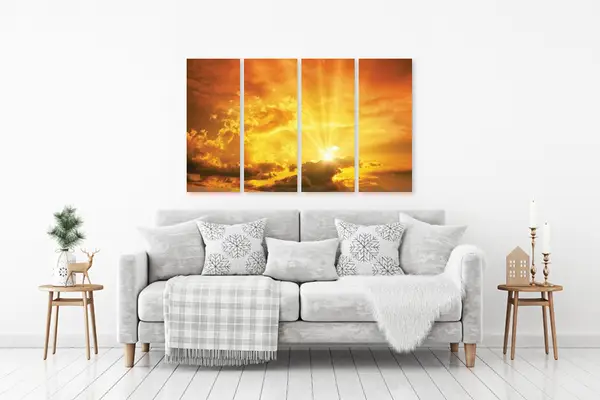 Ο πίνακας παρουσιάζει ένα μαγευτικό τοπίο με έντονες λεπτομέρειες που οδηγούν το βλέμμα σε κάθε πλευρά του καμβά. Οι τόνες των χρωμάτων ισορροπούν μεταξύ της θερμότητας της φύσης και της δροσιάς των ουρανών, δημιουργώντας μια αρμονική συνύπαρξη. Η τεχνική εκτύπωση αντικατοπτρίζει την ευκρίνεια και την αίσθηση της φυσικότητας, προσφέροντας ένα διαχρονικό κομμάτι τέχνης. Το θέμα των συννεφών και του ουρανού συμβολίζει την ελευθερία και την αιωνιότητα, ενώ η χρήση του φωτός υπογραμμίζει τη γαλήνη και την ελπίδα.
