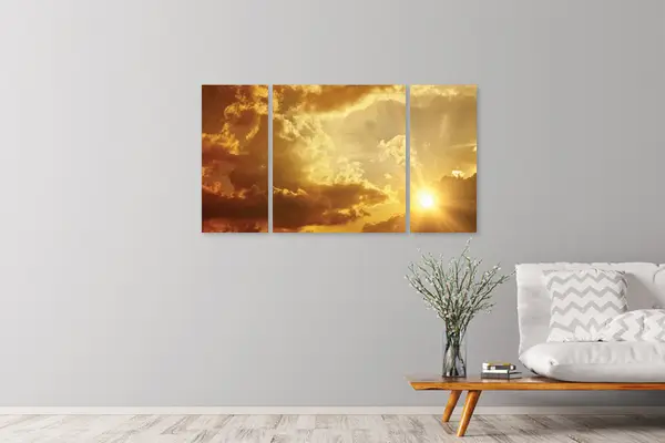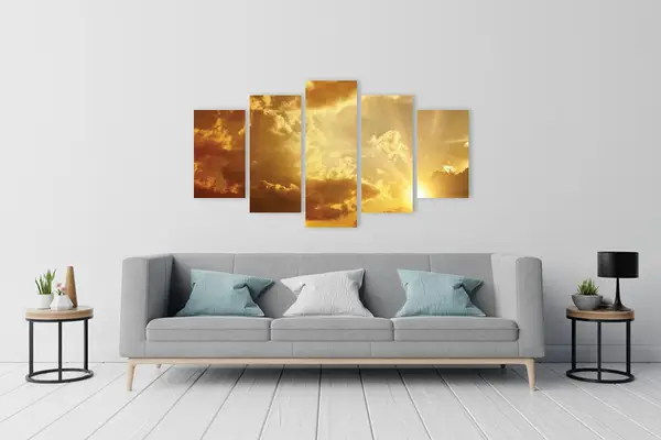 Ο πίνακας CLO-062 ανήκει στην κατηγορία Τοπία και Φύση, απαθανατίζοντας τη μαγεία του ουρανού με ένα εντυπωσιακό παιχνίδι φωτός και σκιάς. Χρησιμοποιώντας προσεκτικά επιλεγμένες πινελιές, οι αποχρώσεις του είναι συνδυασμένες με τέτοιο τρόπο ώστε να αιχμαλωτίζουν την κίνηση των σύννεφων και τη διάχυση του φωτός, δημιουργώντας μια δυναμική αλλά ταυτόχρονα και γαλήνια εικόνα. Ο τόνος της γης και του ουρανού λειτουργούν συμβολικά, υποδεικνύοντας την ελπίδα και τη σύνδεση του ανθρώπου με τη φύση. Η τεχνική εκτύπωσης αναδεικνύει το βάθος και τη φυσικότητα της σκηνής.