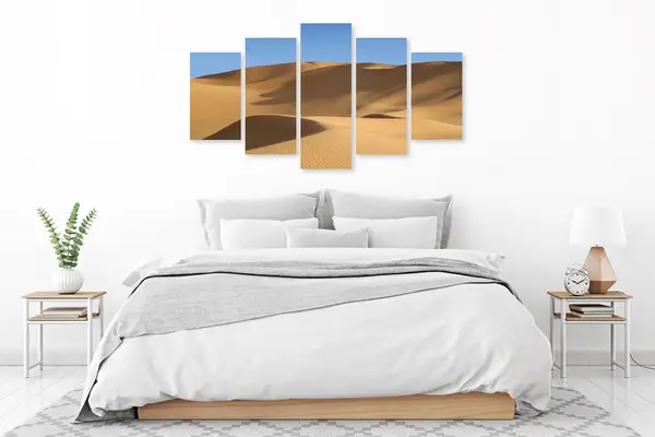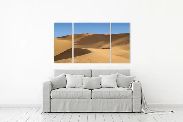 Η φωτογραφία DES-064 απεικονίζει ένα μαγευτικό τοπίο ερήμου, προσφέροντας ένα ταξίδι στις αποχρώσεις της άμμου και του ουρανού. Ο συμβολισμός της ατέρμονης έκτασης υποδηλώνει την ελευθερία και την ηρεμία, καθώς το φως που διαχέεται ελκυστικά πάνω στη σκηνή συμβολίζει την ελπίδα και τη θερμότητα της φύσης. Οι απαλές μεταβάσεις μεταξύ των χρωμάτων δημιουργούν μια αίσθηση βάθους, ενώ η λεπτομέρεια στη σκιά και το φως ακολουθεί μια ισορροπημένη σύνθεση που προάγει την αρμονία της εικόνας.