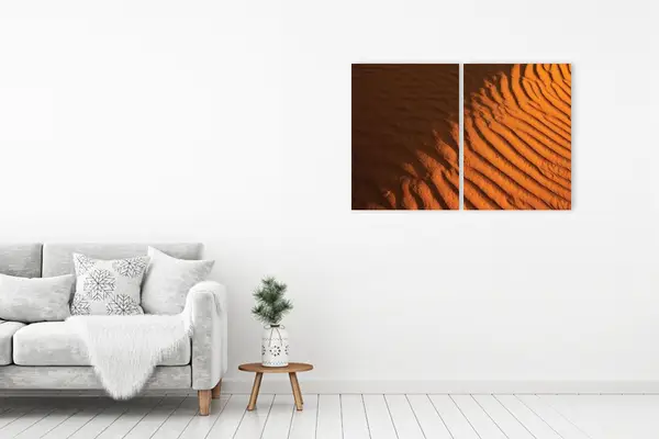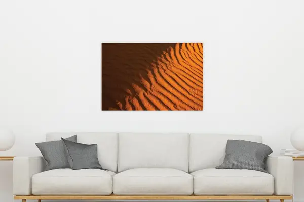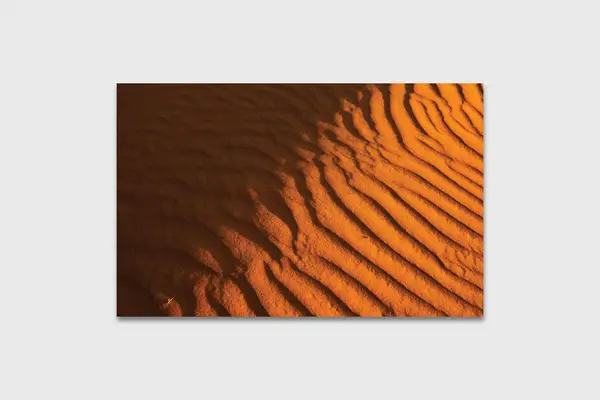 Αυτός ο πίνακας σε καμβά ενσωματώνει τη φυσική ομορφιά της ερήμου, αιχμαλωτίζοντας τη λεπτή αρμονία ανάμεσα στη γη και τον ουρανό. Η σκοποθεσία των ζεστών καφέ και πορτοκαλί αποχρώσεων, σε συνδυασμό με το ψυχρό μπλε του ουρανού, αποδεικνύει την τέχνη της φώτισης και των τονισμών. Η λεπτομερής απεικόνιση της υφής της άμμου μέσω μήυτων πινελιών προσδίδει μια εντυπωσιακή τρισδιάστατη διάσταση στον πίνακα. Το θέμα εξετάζει τη δυναμική σχέση του ανθρώπου με τη φύση, υπογραμμίζοντας τη διαρκή αλλαγή και την ισορροπία.