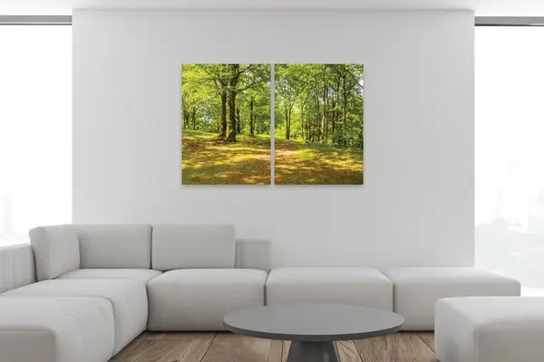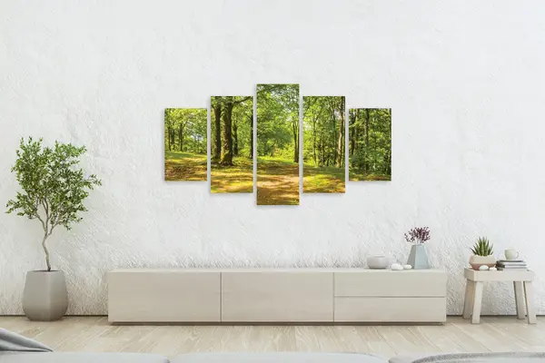 Αυτός ο κομψός πίνακας σε καμβά προσθέτει μια αίσθηση ηρεμίας και φυσικής ομορφιάς σε έναν χώρο. Η απεικόνιση του τοπίου με δασικό θέμα μπορεί να ενσωματωθεί άψογα σε ένα κλασικό στυλ διακόσμησης, προσδίδοντας έναν διακριτικό, γαλήνιο τόνο στο χώρο. Σε ένα μοντέρνο περιβάλλον, ο πίνακας μπορεί να λειτουργήσει ως κεντρικό στοιχείο που προσφέρει έναν αντιπαραβαλλόμενο, αλλά αρμονικό συνδυασμό με λιτές γραμμές και ουδέτερα χρώματα. Στο μινιμαλιστικό στυλ, η απλότητα και η φυσικότητα της τέχνης ενισχύει την καθαρότητα του χώρου, προσφέροντας διακριτική ζεστασιά και βάθος.