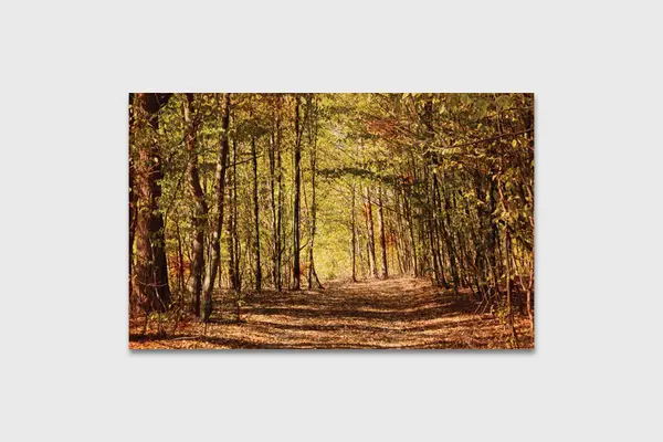 Ο πίνακας απεικονίζει ένα γαλήνιο φυσικό τοπίο, που μας μεταφέρει σε έναν ονειρικό κόσμο όπου κυριαρχούν η ηρεμία και η αρμονία. Η φωτογραφία αποτυπώνει ένα εκπληκτικό θέαμα που ενσωματώνει την αινιγματική ομορφιά του δάσους, με τα χρώματα να παίζουν πρωταγωνιστικό ρόλο. Οι αποχρώσεις του πράσινου και του καφέ δημιουργούν μια γλυκιά αρμονία, ενώ οι παιχνιδιάρικες πινελιές φωτός προσδίδουν ζωντάνια και έναν αέρα αισιοδοξίας. Το φως που φιλτράρεται μέσα από τα δέντρα συμβολίζει την ελπίδα και την αναγέννηση της φύσης.