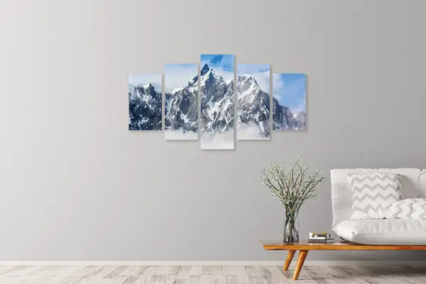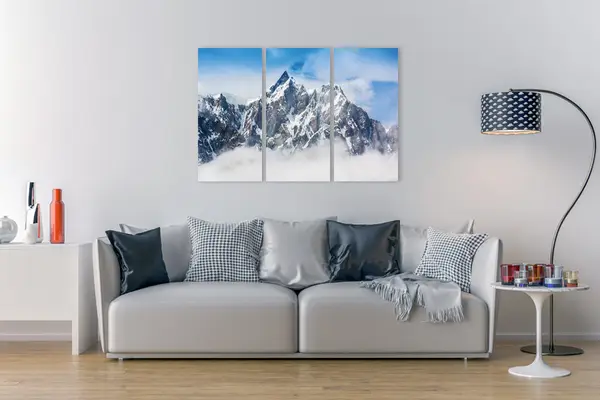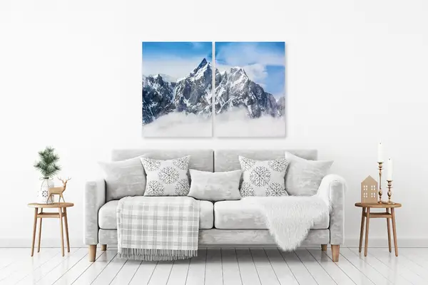 Αυτός ο πίνακας σε καμβά ενσωματώνει μια εντυπωσιακή φωτογραφική απεικόνιση από τοπία και φύση, που μας μεταφέρει στο αιώνιο μεγαλείο των βουνών και του φυσικού τοπίου. Η χρήση της φωτογραφικής τεχνικής αναδεικνύει με σαφήνεια τα πλούσια χρώματα και τις λεπτομέρειες του τοπίου, προσδίδοντας στον πίνακα ζωντάνια και φυσική αίσθηση. Το θέμα του πίνακα αγγίζει τη σχέση μας με τη φύση και την αναζήτηση ηρεμίας και γαλήνης μέσω της παρατήρησης του φυσικού κόσμου.