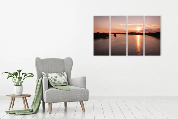 Ο εντυπωσιακός αυτός πίνακας σε καμβά αποτυπώνει την ομορφιά της φύσης, με ένα ειδυλλιακό τοπίο που συμπεριλαμβάνει ποτάμι, δέντρα και ουρανό. Οι γαλήνιες αποχρώσεις του πίνακα καθιστούν τον ιδανικό για τη διακόσμηση τόσο μοντέρνων όσο και κλασικών χώρων. Σε ένα μινιμαλιστικό περιβάλλον, μπορεί να αποτελέσει το κεντρικό στοιχείο, προσφέροντας ένα ήρεμο αλλά εντυπωσιακό στοιχείο. Σε ένα κλασικό σαλόνι, ο πίνακας ενισχύει τη φυσική κομψότητα και δίνει μια φρέσκια πνοή, ενώ σε έναν μοντέρνο χώρο εργασίας, συμβάλλει στη δημιουργία ενός ήρεμου και ισορροπημένου περιβάλλοντος.