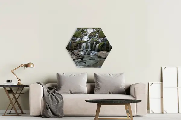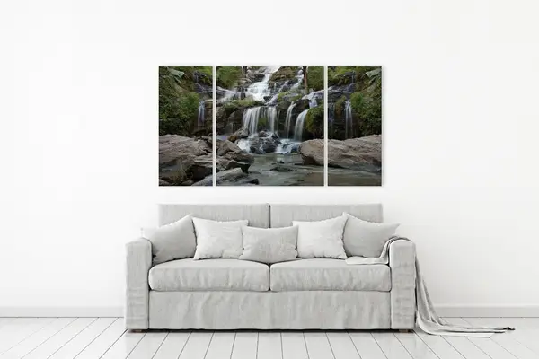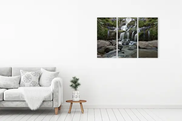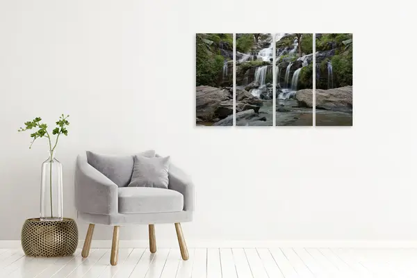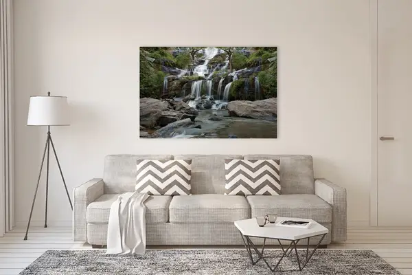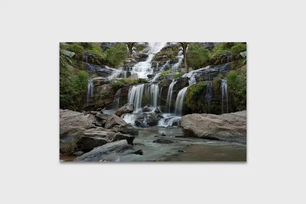 Ο πίνακας WAF-084, που ανήκει στην κατηγορία των Τοπίων και Φύσης, απεικονίζει έναν μαγευτικό καταρράκτη, οδηγώντας μας σε ένα ταξίδι μέσα από πυκνή βλάστηση και διαφαινόμενες ακτίνες φωτός. Η χρήση της φωτογραφίας αποτυπώνει με ακρίβεια τη δύναμη και την ομορφιά της φύσης, προσκαλώντας τον θεατή να εισχωρήσει σε ένα καταπληκτικό τοπίο. Οι αποχρώσεις του πράσινου και το διάφανο γαλάζιο του νερού συμβάλλουν στη δημιουργία μιας ισορροπημένης και ηρεμιστικής εικόνας, ενώ οι λεπτομέρειες των σκιάσεων και των φωτεινών σημείων προσθέτουν βάθος και ζωντάνια στο σύνολο.