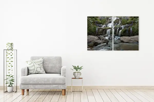 Ο πίνακας WAF-084 ως φωτογραφική αποτύπωση ενός φυσικού τοπίου με καταρράκτες, προσφέρει την αίσθηση της απόδρασης από την καθημερινότητα. Η προσεγμένη σύνθεση και οι φωτεινές αντιθέσεις προκαλούν μια αίσθηση ηρεμίας και ανανέωσης. Η αρμονία που εκπέμπει, επιτρέποντας στον θεατή να νιώσει τη φρεσκάδα και την αγνότητα της φύσης, ενισχύεται από την προσοχή στη λεπτομέρεια, δημιουργώντας μια πνευματική σύνδεση με το έργο.