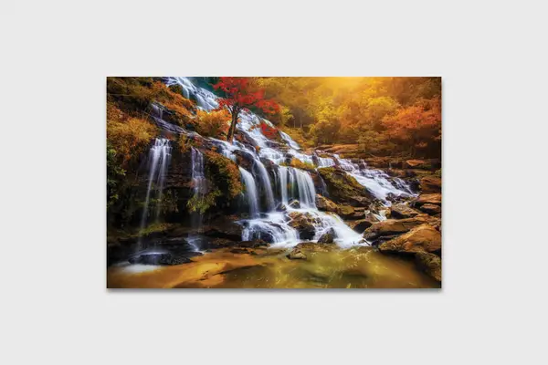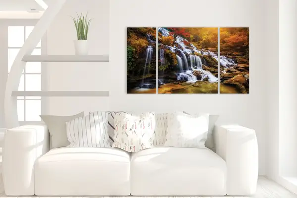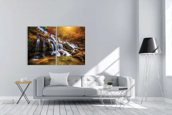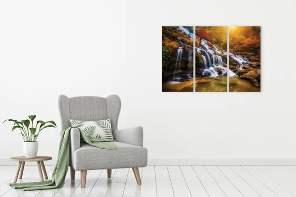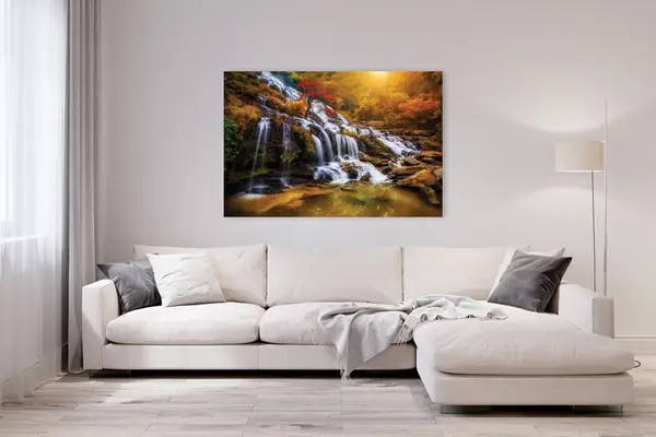 Ο πίνακας σε καμβά WAF-090 είναι μια ψηφιακή αναπαράσταση από τη συλλογή Τοπία και Φύση, η οποία ενσωματώνει ένα γαλήνιο τοπίο με καταρράκτη. Αυτή η δημιουργία μπορεί να αποτελέσει την ιδανική προσθήκη για ένα μοντέρνο στυλ διακόσμησης, όπου η αίσθηση της φύσης και του γαλήνιου τοπίου ενσωματώνονται άριστα με καθαρές γραμμές και ουδέτερα χρώματα. Σε έναν κλασικό χώρο, ο φυσικός χαρακτήρας του πίνακα μπορεί να προσφέρει μια αναζωογονητική και ταυτόχρονα εορταστική νότα, ενώ για τους λάτρεις του μινιμαλισμού, οι αρμονικές αποχρώσεις της φύσης συμπληρώνουν τέλεια έναν χώρο με χαμηλούς τόνους και λιτές λεπτομέρειες.
