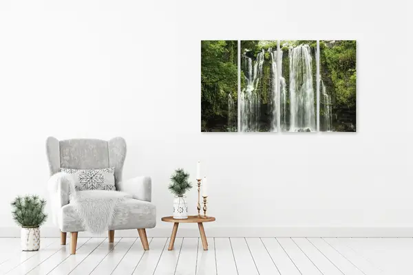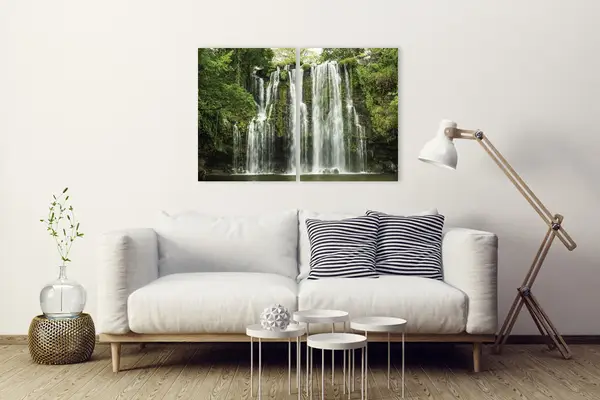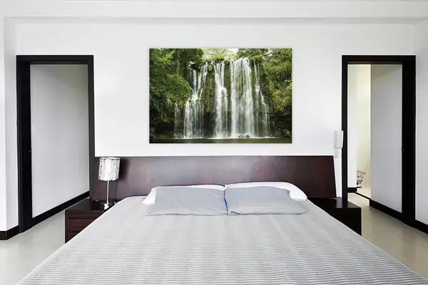 Ο πίνακας σε καμβά WAF-108 είναι ιδανικός για να προσθέσετε μια αίσθηση φυσικής ομορφιάς και γαλήνης στον χώρο σας. Η λεπτομερής απεικόνιση τοπίου και φύσης με το καταρράκτη στη μέση της σύνθεσης μπορεί να ενσωματωθεί αρμονικά σε διάφορα στυλ διακόσμησης. Σε έναν μοντέρνο χώρο, οι καθαρές γραμμές του καμβά δημιουργούν ένα έντονο οπτικό ενδιαφέρον, ενώ σε έναν κλασικό χώρο, ο πίνακας μπορεί να λειτουργήσει ως κομμάτι με λεπτομέρειες που θυμίζουν ζωγραφικές τεχνοτροπίες των περασμένων αιώνων. Για τους λάτρεις του μινιμαλισμού, η φυσική απεικόνιση και οι καταπραϋντικοί τόνοι νερού προσφέρουν έναν δομικό τόνο ηρεμίας και ισορροπίας. Η τοποθέτησή του στο σαλόνι ή το υπνοδωμάτιο μπορεί να προσφέρει θεαματική αναβάθμιση του χώρου, αναδεικνύοντας τις διαφορετικές υφές και αποχρώσεις του περιβάλλοντος.