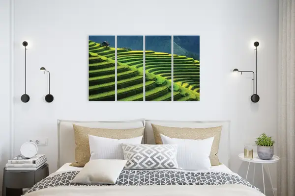 Αυτός ο υπέροχος πίνακας τοπίου, με κωδικό 85415, προέρχεται από τη συλλογή Τοπία και Φύση και είναι μια εξαιρετική φωτογραφία φυσικών τοπίων που μεταφέρθηκαν σε ψηφιακό καμβά. Οι λεπτές αλλά διακριτές αποχρώσεις του πράσινου, του μπλε και του γήινου χρώματος συμβάλλουν στην ανάδειξη της φυσικής ομορφιάς του τοπίου, ενώ οι φωτεινότερες αποχρώσεις ανάμεσα στα στοιχεία δίνουν την εντύπωση της ζωής και της ανάπτυξης, συμβολίζοντας τη σύνδεση του ανθρώπου με το περιβάλλον του.