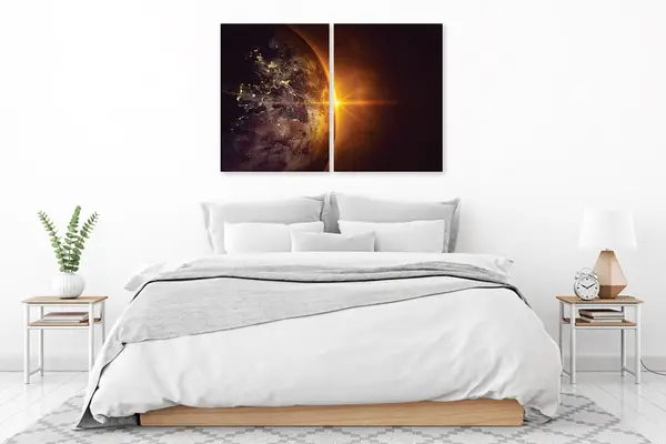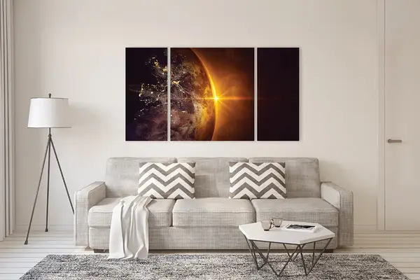 Ο πίνακας σε καμβά SPA-034, με το επιβλητικό θέμα του διαστήματος, αποτελεί μια ιδανική επιλογή για μοντέρνους ή ακόμα και μινιμαλιστικούς εσωτερικούς χώρους. Η έντονη και μυστηριώδης απεικόνιση του διαστήματος μπορεί να μεταμορφώσει ένα απλό καθιστικό ή ένα γραφείο σε ένα χώρο που προκαλεί έμπνευση και στοχασμό. Ένας πίνακας σε καμβά σαν αυτόν συνδυάζεται απρόσκοπτα με έντονα χρώματα ή και με γήινους τόνους, αναδεικνύοντας τον χώρο με την μοναδική αύρα του.