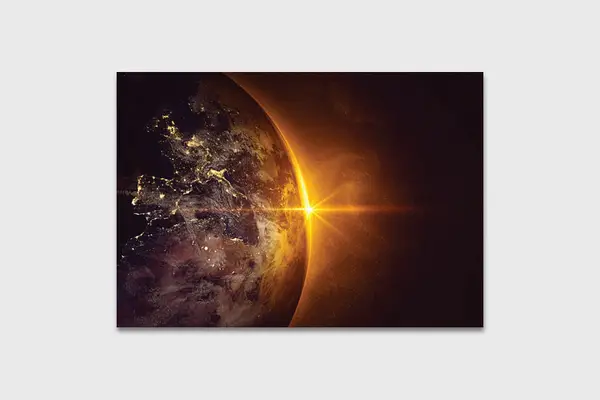 Η ψηφιακή εκτύπωση του πίνακα SPA-034 αποδίδει ρεαλιστικά τη μεγαλοπρέπεια του διαστήματος, αναδεικνύοντας τη λεπτομέρεια και το βάθος μέσω των ποικίλων αποχρώσεων μπλε, μοβ και ασπρόμαυρων τόνων. Η αρμονία των χρωμάτων και η ισορροπημένη σύνθεση προκαλούν τον θεατή να εξετάσει το αχανές σύμπαν και βοηθά στην αίσθηση ελευθερίας και άπειρου. Το θέμα αυτό προσφέρει μια μεταφορική ματιά στις αστείρευτες δυνατότητες της ανθρώπινης εξερεύνησης και της φιλοδοξίας.