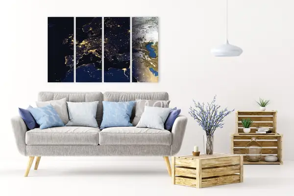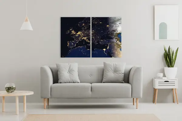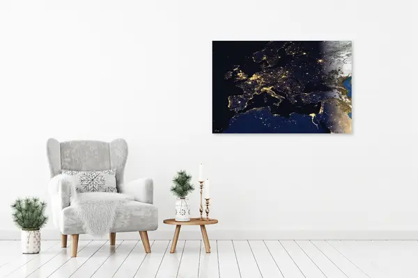 Ο πίνακας σε καμβά με θέμα το διάστημα μπορεί να προσθέσει μια μοναδική αίσθηση μυστηρίου και βάθους σε διάφορους χώρους. Σε έναν μοντέρνο χώρο διακόσμησης, ο πίνακας αυτός μπορεί να λειτουργήσει ως κεντρικό σημείο ενδιαφέροντος, συνδυάζοντας με στοιχεία από μέταλλο και υφές σε γκρι ή μαύρο χρώμα. Σε ένα μινιμαλιστικό περιβάλλον, η απλότητα των γραμμών και η λιτότητα της χρωματικής παλέτας του έργου μπορούν να ενισχύσουν την αίσθηση της απαλότητας και του κενού. Ακόμη και σε κλασικούς χώρους, αυτός ο πίνακας μπορεί να λειτουργήσει ως μια μοντέρνα νότα που προσδίδει ένταση και ενδιαφέρον, προσφέροντας αντίθεση με τις υπόλοιπες παραδοσιακές επιρροές του χώρου.