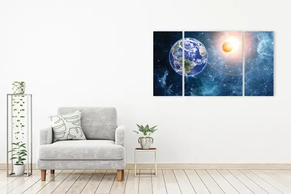 Ο πίνακας σε καμβά SPAC-105 είναι ιδανικός για την προσθήκη μοντέρνας αισθητικής σε οποιοδήποτε χώρο. Οι μυστήριες αποχρώσεις του σε τόνους βαθύ μπλε και μαύρου το καθιστούν εξαιρετικό για έναν μινιμαλιστικό χώρο, προσφέροντας ένταση και δυναμική. Σε ένα μοντέρνο καθιστικό, μπορεί να ενσωματωθεί εύκολα λόγω των γεωμετρικών του σχημάτων και των καθαρών γραμμών του. Ταυτόχρονα, σε κλασικούς χώρους ή γραφεία, μπορεί να προσφέρει μια δόση πολυτέλειας και διαχρονικής κομψότητας. Οι αποχρώσεις του λειτουργούν συνεργατικά με ουδέτερους τόνους, αναδεικνύοντας τη σοβαρότητα και την αυθεντικότητα του χώρου.