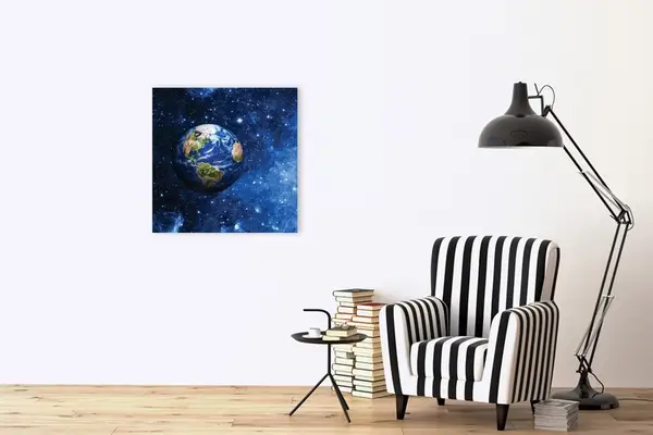 Η επαγγελματική και περίτεχνη εκτύπωση αυτού του πίνακα σε καμβά μεταφέρει μια βαθιά αίσθηση δέους και σκέψης για το σύμπαν και το άπειρο. Ο πίνακας δημιουργεί μια ιδιαίτερη ατμόσφαιρα που ενθαρρύνει τον θεατή να χαλαρώσει και να βυθιστεί σε σκέψεις σχετικά με την θέση του ανθρώπου μέσα στο κοσμικό σχέδιο. Μέσα από την αφθονία των λεπτομερειών και τη διακριτική του εμφάνιση, προκαλεί μια αφυπνιστική συνειδητοποίηση της ομορφιάς και της μυστηριώδους φύσης του διαστήματος.