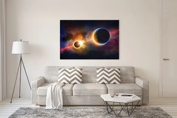 Ο πίνακας σε καμβά SPAZ-125 αποτυπώνει με μοναδικό τρόπο τη μαγεία του διαστήματος και μπορεί να ενσωματωθεί άριστα σε διαφορετικά στυλ διακόσμησης. Για ένα μοντέρνο περιβάλλον, οι μεταλλικές αποχρώσεις του έργου ταιριάζουν ιδανικά με γκρι και μαύρες λεπτομέρειες, προσφέροντας έναν φουτουριστικό και ταυτόχρονα κομψό χαρακτήρα στο χώρο. Σε πιο μινιμαλιστικό στυλ, η λιτή αισθητική του μπορεί να λειτουργήσει ως σημείο προσοχής, δημιουργώντας μια ενδιαφέρουσα αντίθεση με τις καθαρές γραμμές και τις ουδέτερες αποχρώσεις. Τέλος, σε ένα κλασικό περιβάλλον, μπορεί να συνδυαστεί με ξύλινα έπιπλα και ζεστά χρώματα, προσφέροντας μια σύγχρονη πινελιά που αναδεικνύει τη δυναμική του θέματος.
