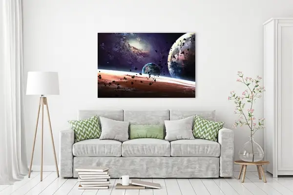 Ο πίνακας σε καμβά SPAZ-127 αποτελεί μια ιδανική προσθήκη για την διακόσμηση εσωτερικών χώρων. Με το εντυπωσιακό θέμα του διαστήματος, μπορεί να ενσωματωθεί άριστα σε μοντέρνα και μινιμαλιστικά στυλ, αναδεικνύοντας τη σοβαρότητα και το βάθος του χώρου. Σε ένα κλασικό περιβάλλον, ο πίνακας αποπνέει μοναδικότητα και προσιτή πολυτέλεια, προσδίδοντας μια αίσθηση μυστηρίου και εξερεύνησης. Οι ζωντανές του αποχρώσεις μπορούν να λειτουργήσουν σαν κεντρικό σημείο ενδιαφέροντος, φέρνοντας ισορροπία σε υπνοδωμάτια ή γραφεία.