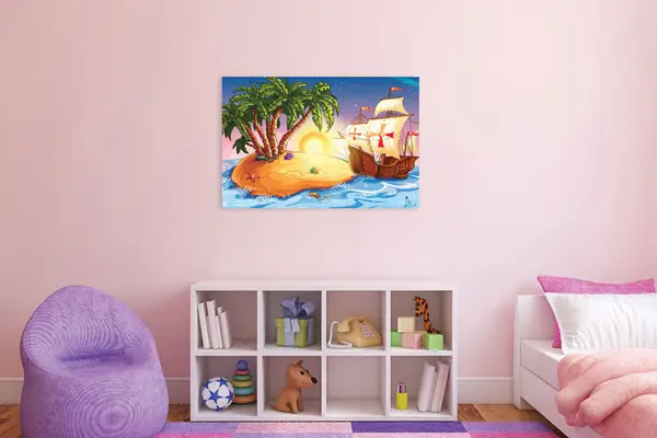 Αυτός ο πίνακας ανήκει στην κατηγορία των παιδικών εικόνων και δημιουργεί μια παιχνιδιάρικη ατμόσφαιρα με τα χαρούμενα θέματα του. Είναι σχεδιασμένος ώστε να ενεργοποιεί τη φαντασία του παιδιού, προσφέροντας εικόνες γεμάτες χρώμα και δυναμική. Οι απαλές αποχρώσεις και οι έντονες γραμμές συνδυάζονται για να προσφέρουν ένα αποτέλεσμα που χαρίζει ενέργεια και χαμόγελα στα παιδιά.