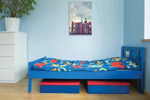 Ο πίνακας σε καμβά CHSC-141 αποτελεί μια εξαίσια επιλογή για το παιδικό δωμάτιο, προσδίδοντας μια αίσθηση παιχνιδιού και φαντασίας. Η ζωηρή και χαρούμενη του ατμόσφαιρα ταιριάζει ιδανικά με μοντέρνο και minimal στυλ διακόσμησης, επιτρέποντας στο χώρο να αναδεικνύεται χωρίς να είναι υπερφορτωμένος. Τα έντονα χρώματα της εικόνας μπορούν να αποτελέσουν βασικό σημείο αναφοράς, γύρω από το οποίο δύναται να «χτιστούν» άλλες διακοσμητικές επιλογές, όπως μαξιλάρια, κουρτίνες ή χαλιά. Με την τοποθέτησή του σε ένα προσεκτικά επιλεγμένο σημείο, μπορεί να ενορχηστρώσει μια ζεστή και ευχάριστη ατμόσφαιρα για τα παιδιά.