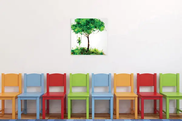 Ο πίνακας δημιουργεί αίσθηση ασφάλειας και ηρεμίας, στοιχεία ιδιαίτερα πολύτιμα για την καθημερινότητα ενός παιδικού χώρου. Παράλληλα, η ζωντάνια των αποχρώσεων διεγείρει τη δημιουργικότητα και την όρεξη για παιχνίδι. Καθώς το βλέμμα περιηγείται στην επιφάνεια, ο θεατής μπορεί να νιώσει την χαρά και την ελπίδα που κρύβονται σε έναν κόσμο γεμάτο χρώματα και φαντασία. Είναι ένας κόσμος όπου η αθωότητα και ο ενθουσιασμός συναντούν τη φαντασία, μεταφέροντας μια βαθιά αίσθηση ευτυχίας.