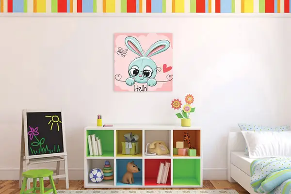 Αυτός ο πίνακας σε καμβά προσφέρει μια παιχνιδιάρικη και φωτεινή προσθήκη σε κάθε παιδικό δωμάτιο. Οι ζωντανές αποχρώσεις και το χαρούμενο θέμα του τον καθιστούν ιδανικό για μοντέρνα και μίνιμαλ διακόσμηση που επιδιώκει να προσφέρει χαρά και ζωντάνια. Συνδυάζει αρμονικά με παστέλ αποχρώσεις ή τολμηρές διακοσμητικές επιλογές, λειτουργώντας ως κεντρικό στοιχείο ή προσθέτοντας μια ζωντανή πινελιά σε κλασικά παιδικά δωμάτια.
