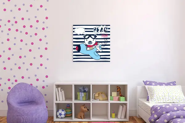 Αυτός ο πίνακας σε καμβά ανήκει στην κατηγορία των παιδικών εικόνων και αποπνέει ενέργεια, αθωότητα και ανεμελιά. Χρησιμοποιώντας τεχνική ψηφιακής εκτύπωσης, καταφέρνει να διατηρήσει την ευκρίνεια και τη φωτεινότητα των χρωμάτων. Η σύνθεση είναι σχεδιασμένη ώστε να τραβά την προσοχή των παιδιών, ενσωματώνοντας χαριτωμένες φιγούρες και θέματα που προσεγγίζουν τον κόσμο της φαντασίας τους. Η αρμονική χρήση των παστέλ πινελιών και των υφών αναδεικνύει τα στοιχεία του έργου μέσα από την απαλή και ζεστή πινελιά του.