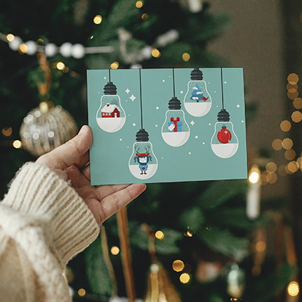 Μη διστάσετε να μας ζητήσετε να σχεδιάσουμε μια χριστουγεννιάτικη κάρτα προσαρμοσμένη στις ανάγκες σας, με ειδικές εκτυπώσεις και τεχνικές.
